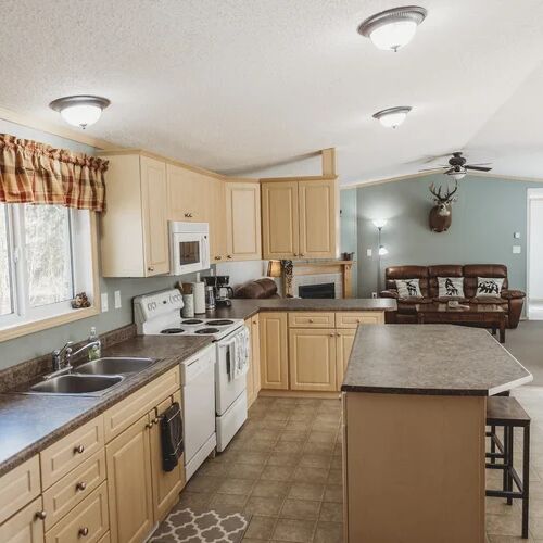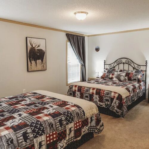 The cottage is fully furnished and features a complete kitchen, three bedrooms (two hunters per room), two fully equipped bathrooms, laundry facilities, and two smaller cabins used by guides, the camp cook, or – upon request – by hunters.