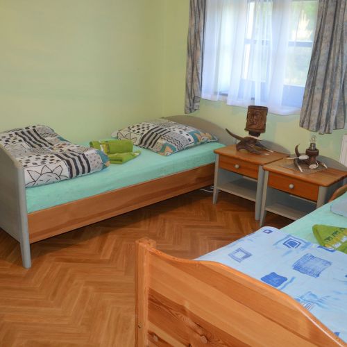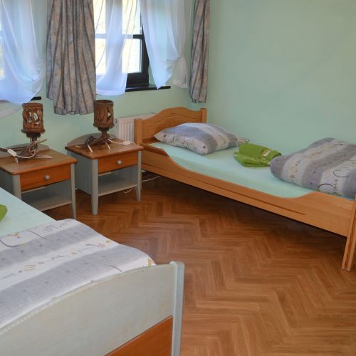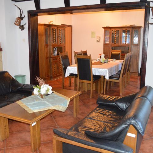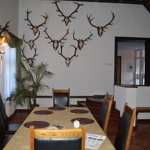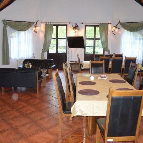 Accommodation takes place in a lovely hunting lodge in the heart of the district. While it is not a luxurious place, everything is as it should be, and the catering is very good. Our guests stay in one part of the house, while the hunting guide, Marek, resides in the other part. Marek speaks English and ensures that everything runs smoothly. The guest section includes a cozy living/dining room, 6 double rooms (2 rooms share a bathroom and toilet), as well as 2 apartments, each with 1 room, 1 bathroom, and 1 small living room. A refrigerator is available for our guests' use. Wi-Fi is available in the house, but mobile coverage is poor.