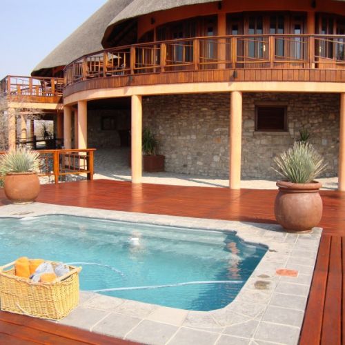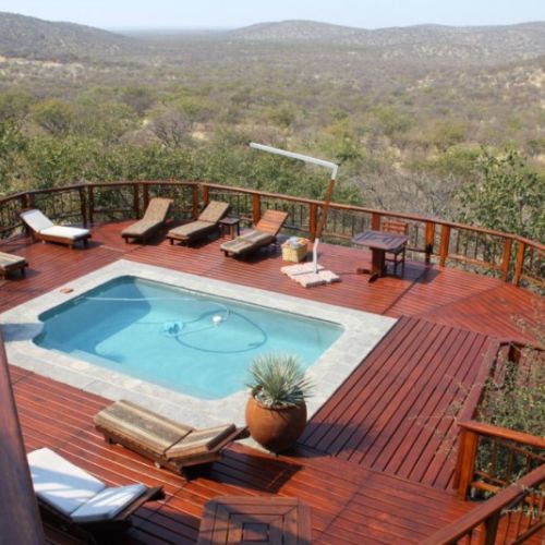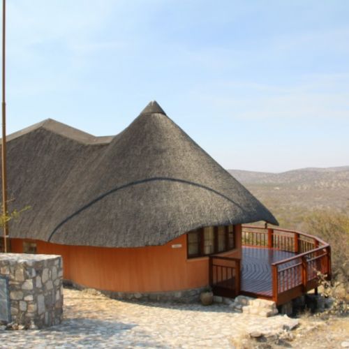 Our hunters will be accommodated at the magnificent Etosha Mountain Lodge. Previously, you could also choose to stay at Etosha Safari Lodge, but it is now only a tourist lodge. Mountain Lodge is built on the top of a small mountain with a magnificent view over the surrounding area. You will be accommodated in comfortable thatched chalets decorated in African style. There are 6 luxurious thatched chalets, and a suite with its own private viewing deck. All the rooms have en-suite bathroom, which are very big and there is a bathtub as well as a shower. There are also a Lapa, dining room, bar, swimming pool and wine cellar. Furthermore, a stay with Etosha Hills Hunting is a culinary experience out of the ordinary. You can really look forward to when it is going to be your turn to visit. This destination is very family-friendly and offers a couple of activities for the family as well.