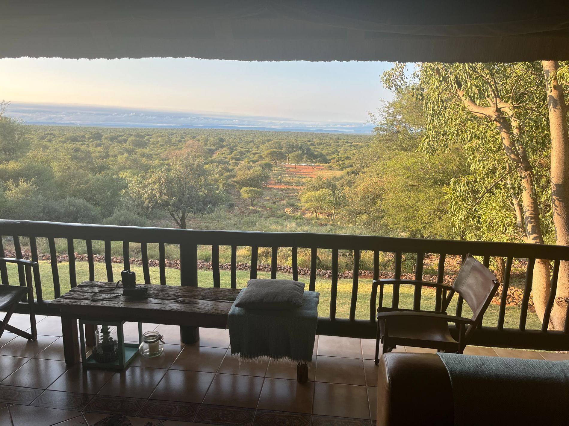 The main lodge has an open veranda and dining area with views over the surrounding valleys. Here you will be spoiled with delicious meals and have plenty of space to relax in. It is also here you will find coffee, tea and snacks plus a minibar with water, soft drinks, wine and beer.