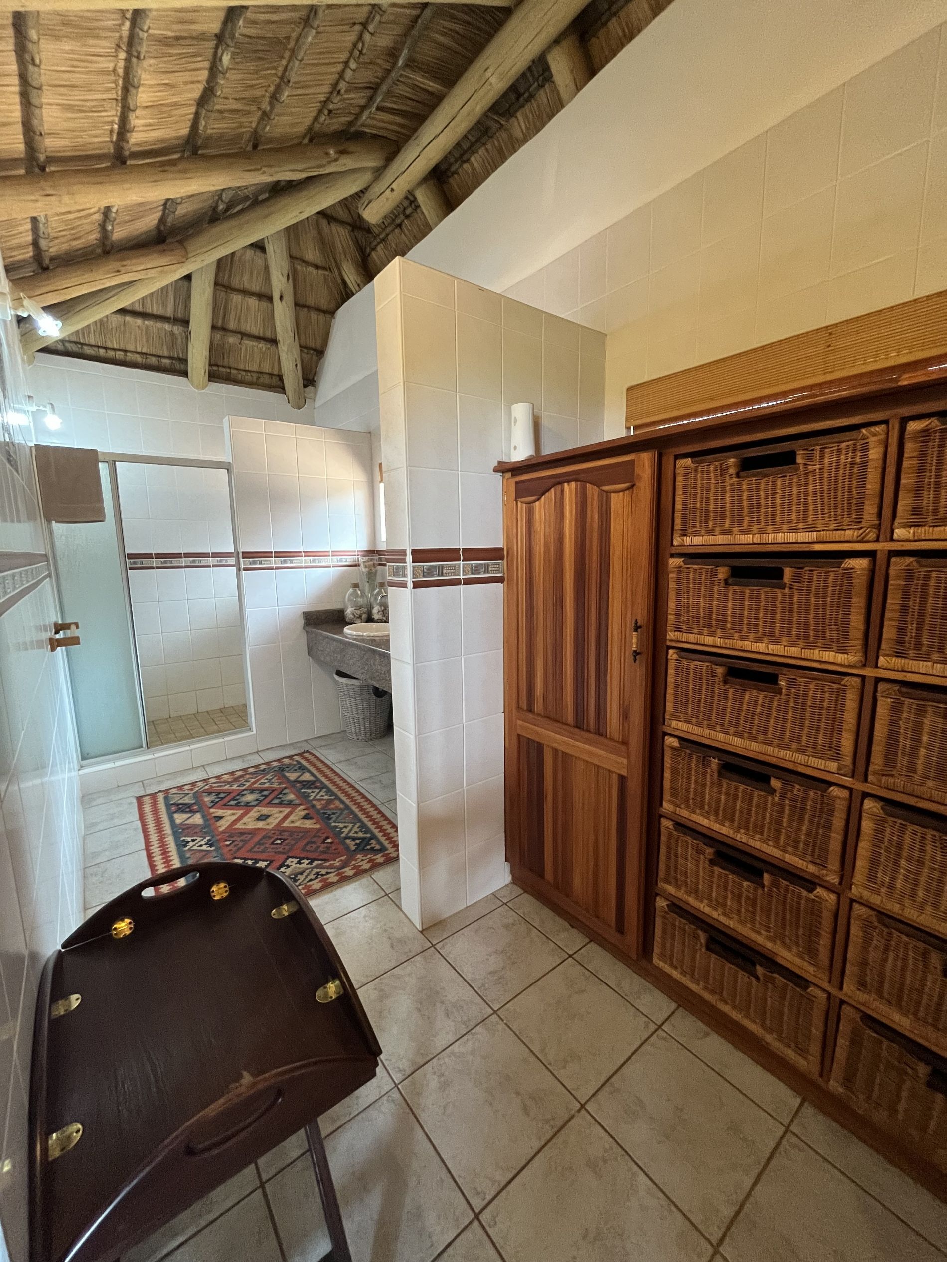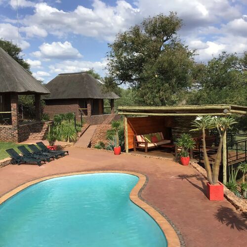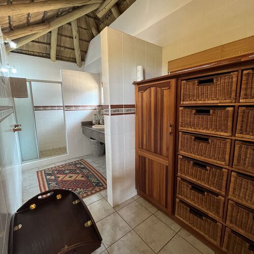 The lodge consist of 3 thatched huts (on for 4 persons and two for 2 persons) and 2 en-suite bedrooms (for 2 persons) - all with en-suite bathrooms. This provides accommodation for five couples or family- and hunting groups at any given time. In additions hunter’s partners are allowed to accompany them on their hunting excursions.