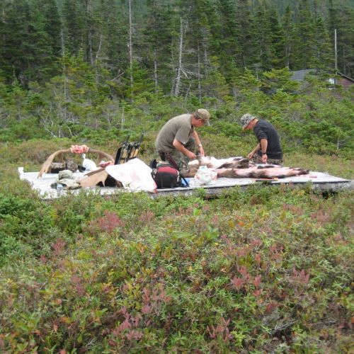The camps in the hunting district are ideally situated in first class hunting districts for moose, black bear and reindeer in south west Newfoundland. Moose, black bear, and reindeer can all be hunted on foot from camp, and our outfitter enjoys exclusive hunting-rights within a wide radius around his camps.