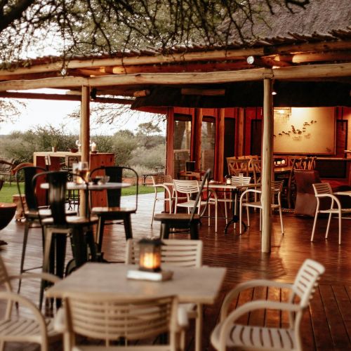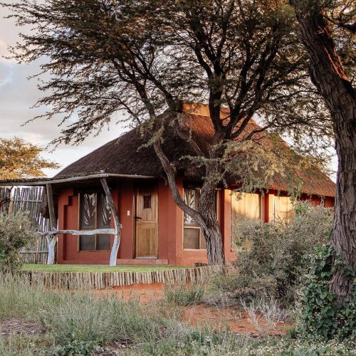 VERONICA Lodge is situated in a typical Kalahari savannah landscape with red dunes and majestic valleys. The main building and the surrounding thatched bungalows are all beautifully situated on a dune, which gives an exceptional 360 degrees view. The bungalows are with air-condition and lots of atmosphere. There are 12 bungalows with room for 24 people.