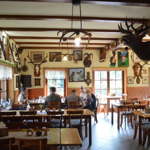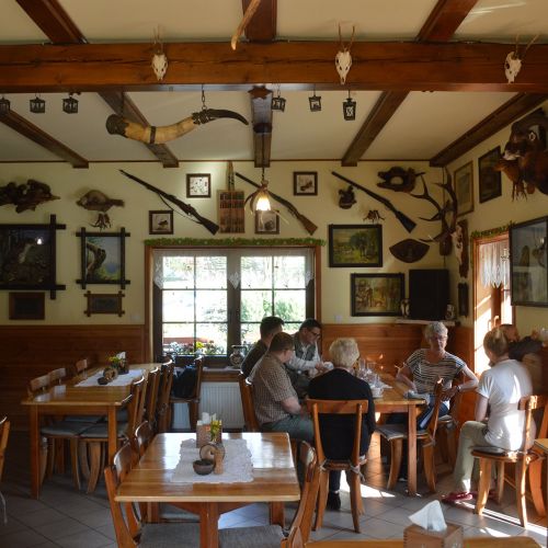 During your stay, you will be accommodated on the first floor of a charming family-run restaurant, situated in beautiful surroundings in the heart of the district. The rooms are cozy, offering a warm and welcoming atmosphere. Although the area attracts many tourists, especially in winter, the hunting grounds remain undisturbed, as hunting takes place away from the tourist zones. Wi-Fi and mobile coverage are available.