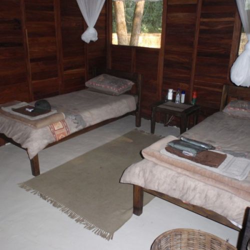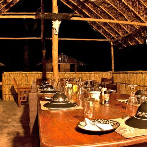 You will stay in a classic bush-camp consisting of 4 guest houses, all with private bathroom and toilet, as well as a sitting-/dining hut built from reeds and palm leaves, and a cosy fireplace around which one can sit in the evening and discuss the day’s events over a cold drink. The meals are of a high standard, and the beautifully prepared food often features game. Now and again you hunt in remote parts of the district, when you will sleep simpler tented camps that lies in various different places around the enormous hunting district.