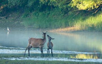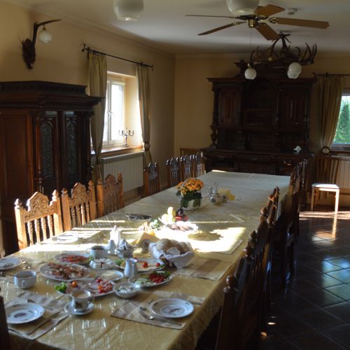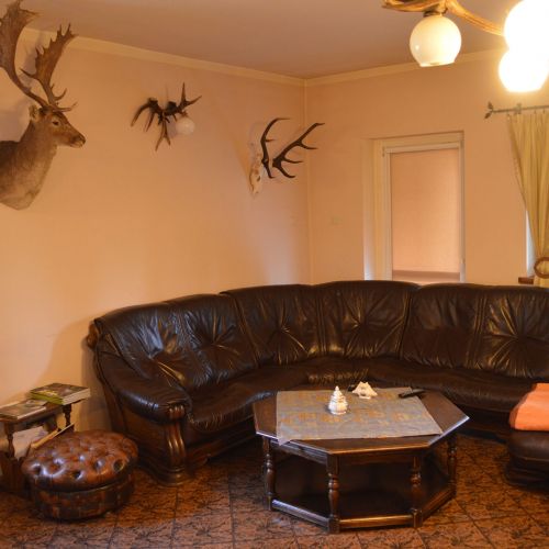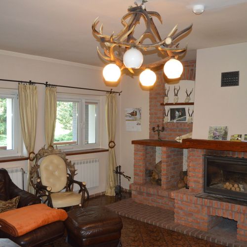 Accommodation is provided in the district’s hunting lodge, from where, during the rutting season in September, hunters can hear the roars of the stags right outside the house. The guest area on the first floor includes 1 single room, 4 double rooms, 3 triple rooms, and 1 quadruple room. A refrigerator is available for the guests' use. On the lower floor, there is a cozy lounge with a fireplace, as well as a dining room. There is access to a locked garage and cold storage. The hunting manager, Franciszek Matysiak, speaks a little German. He and his hunting guides are very professional and highly regarded among our clients. Wi-Fi and mobile coverage are available.