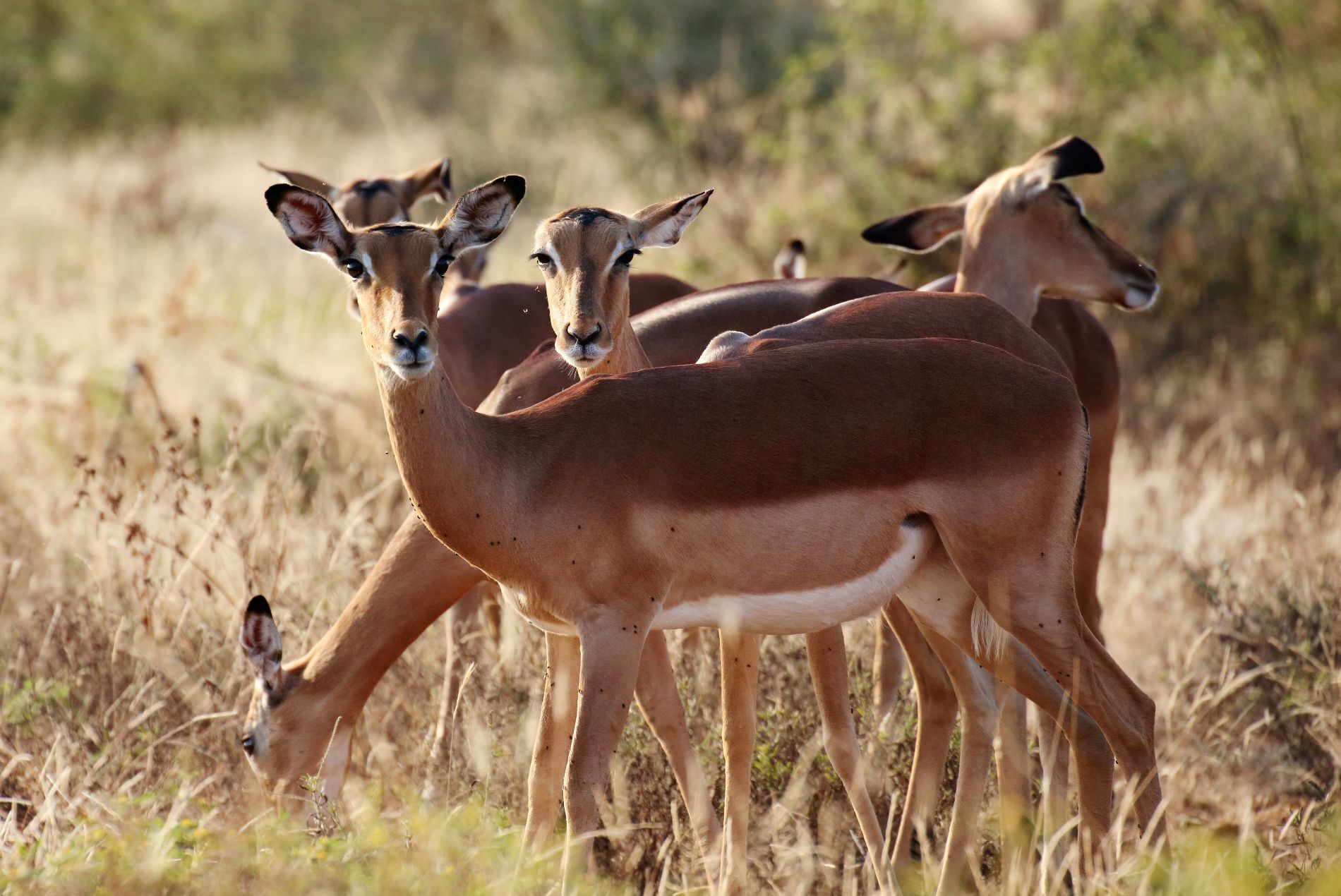 Scientific Name: Aepyceros melampus Subspecies: East African Impala (Aepyceros m. rendillis) Angola Impala (Aepyceros m. petersi) Distribution: South Africa, Mozambique, Zimbabwe, Botswana, Namibia, Angola, Zambia, Tanzania, Kenya, Uganda and Congo (Zaire) Habitat: Open bush and Acacia savanna Description: The three species are here descriped as on as the difference in appearance is negligent...