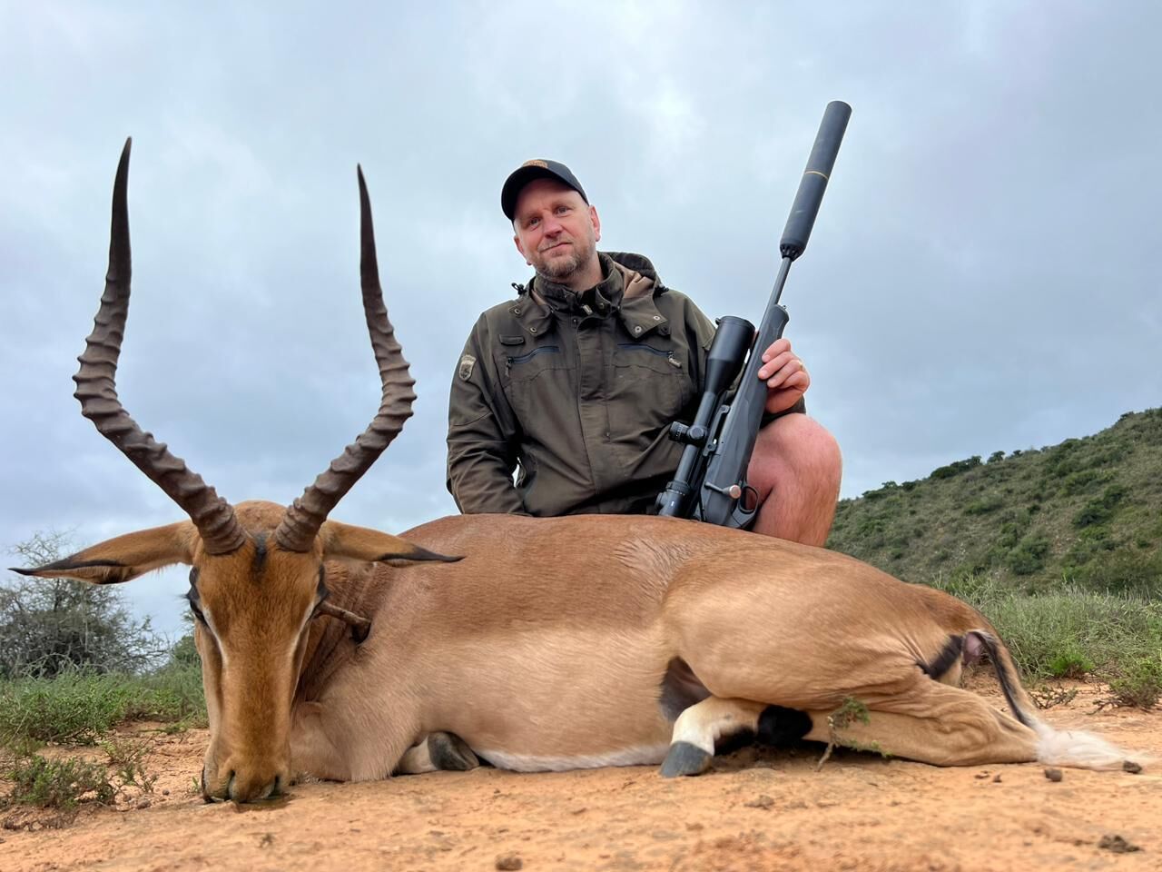 Once again I was hunting with my Mauser M03 African PH in .300 Winchester Magnum with a Zeiss Victory HT 2.5-10X on top. Certainly too much gun for an animal weighing only about 12 kg but for the nyala the caliber was suitable and therefore I felt it was a very good all-round rig for this hunt. I simply had to be careful to place the bullet behind the shoulder on the red duiker to give the taxidermist a fair chance.