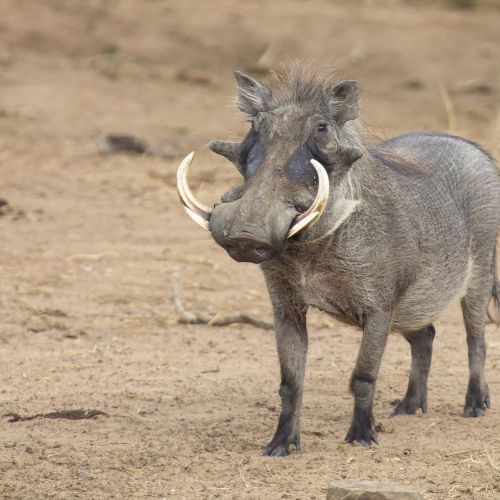 Scientific Name: Potamochoerus porcus Subspecies: Up to 18 recognised species, here described as one. Distribution: All of Africa south of the Sahara Desert, excepting the desert of Namibia. Habitat: High forest, their fringes and thick bush country, often near rivers. Frequents fields where they cause much damage. Description: A domestic pig-like animal, weighing around 100 kg and measuring...