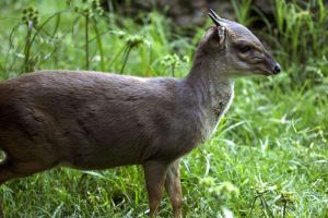 Scientific Name: Cephalophus monticola Subspecies: Up to 18 subspecies of the Blue Duiker are recognised. Distribution: Cameroun, Gabon, Congo (Brazz.), Congo (Zaire), Uganda, Tanzania, Kenya, Zambia, Mozambique, Zimbabwe and South Africa. Habitat: Densely wooded country. Often along rivers. Description: Small antelope weighing 8 - 10 kg with a shoulder height of 30 - 40 cm. General colour...