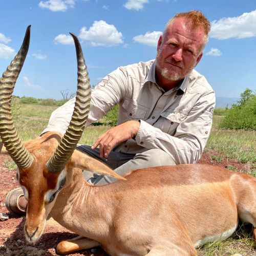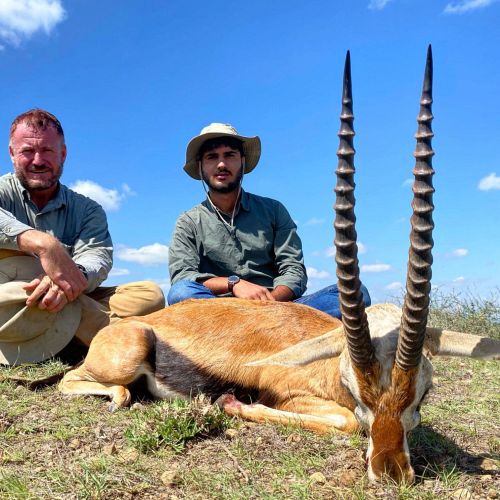 Scientific Name: Gazella granti Subspecies: Gazella petersi, Gazella brighti, Gazella robertsi. Distribution: From Southern Somalia to the southern parts of Tanzania. Habitat: Open grassland and bush Description: Middlesized gazelle with a shoulder height of 95 cm and a weight of 60 - 85 kg. General colour fawn. Hunting method: Pursch Hunting available in: Tanzania and Ethiopia.