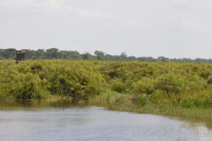 Our safaris for the elusive ghost of the swamp, the Sitatunga, are undertaken in the Kafu River Basin and in the papyrus belts along the banks of River Nile. Our areas hold the highest density of Sitatunga anywhere in Africa. Our areas hold the highest density of Sitatunga anywhere in Africa. It is not uncommon to see between 7 to 25 Sitatunga (males, females & young ones) daily in the course of your safari. Sitatunga hunting involves quite a bit of preparation. Before the start of a safari the papyrus has to be slashed at least three to four weeks ahead of time and a cerebeti (elevated platform) must be built in either a tree or on floating papyrus.