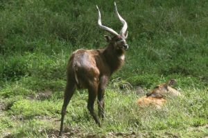 Scientific Name: Tragelaphus spekei Subspecies: Tragelaphus s gratus, Tragelaphus s. selousi Distribution: Tragelaphus spekei: Kenya, Tanzania and Sudan Tragelaphus s. gratus: Central- and West African rainforests. Tragelaphus s. selousi: Zambia, Namibia, Malawi and South Western Tanzania. Habitat: Confined to swampy areas, mainly papyrus and reedswamps by larger lakes Description:...