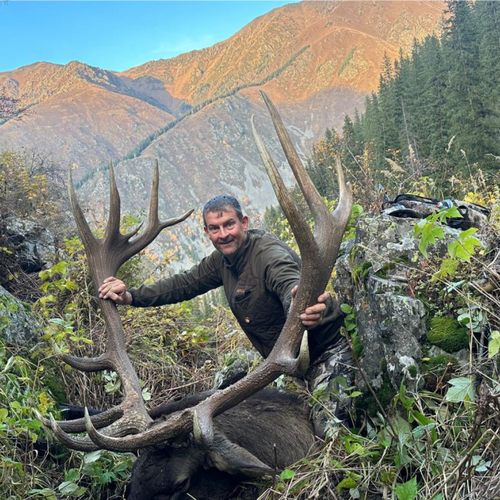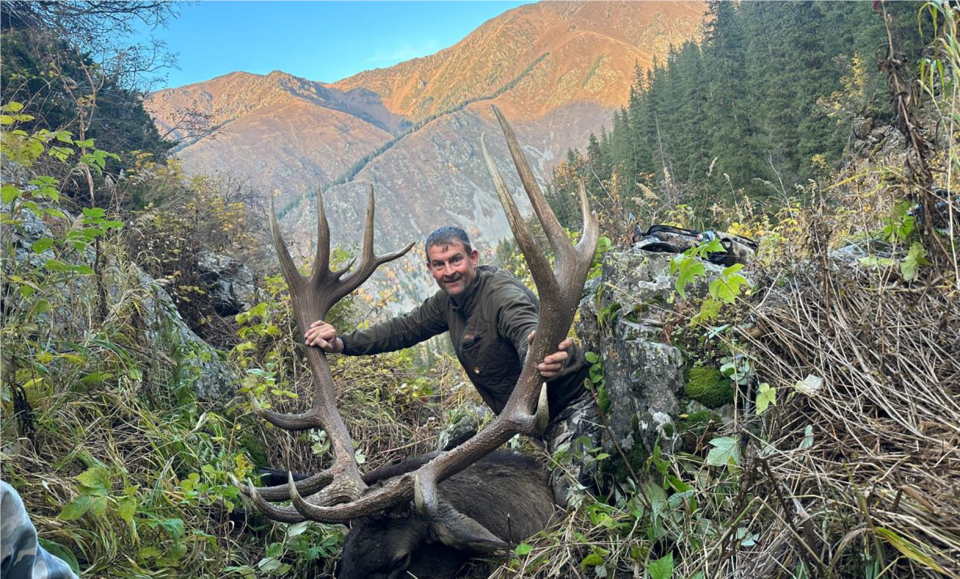 Hunting for maral stag take place in the incredibly beautiful landscape of eastern Kazakhstan, near the borders with Russia, Mongolia and China, in the districts of Dzungarian Alatau, the Ili Alataui national park and Ust-Kamenogorsk. It is very hilly/mountainous terrain with high mountains, forest clad slopes and valleys with fast flowing rivers and streams. The Tien Shan wapiti is the largest of the Asian wapitis, and it has a really impressive trophy. The antlers are massive, and very similar in shape to the North American wapiti. Over the last 15 years our partners have had a 90% success rate for this game species.