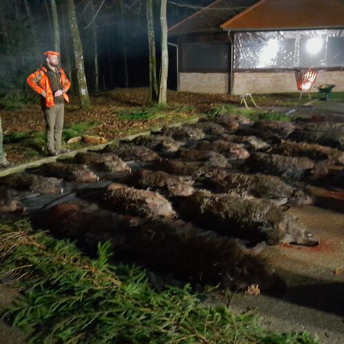 The prices are valid for a minimum of 14 hunters. The entries are drawn every day. The parade of 15-20 wild boars per day is according to the regions' experience. However, the parade ultimately depends of course on shooting skills, wind and weather and general hunting luck.