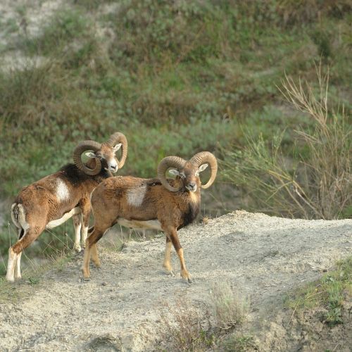 Scientific Name: Ovis musimon Subspecies: None in Europe. Distribution: Small isolated groups all over Europe (mostly in fenced in areas). Habitat: Prefers undulating forested areas. Description: Middle sized animal of the sheep family weighing up to 60 kg. (rams), and measuring around 80 cm over the shoulder. General colour dark brown on the back and along the flanks. A black band is...