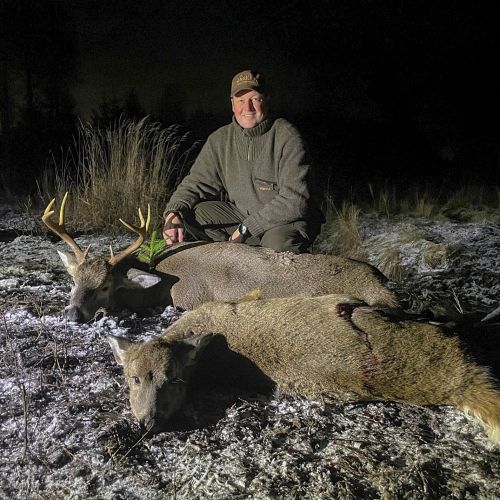 If a hunter shoot a calf on the first outing, a 9 pointer whitetail buck on the second outing and a roe deer buck on the last outing. He will be charged as following: Whitetail buck whole price according to the pricelist, calf with -15% and roebuck with -35% discount according to the pricelist.