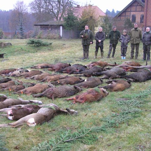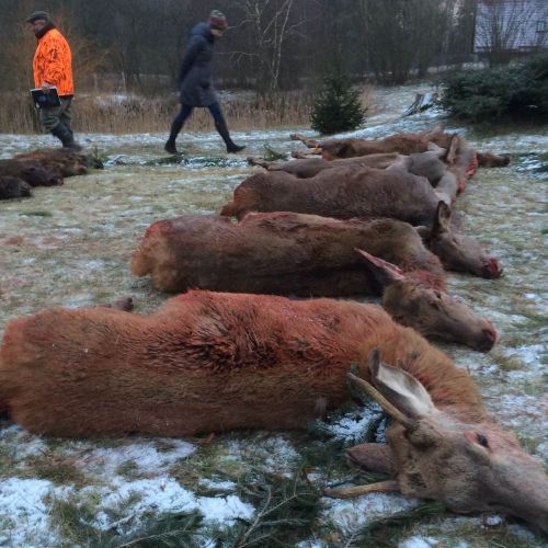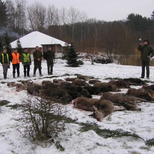 When we ended the hunt after three short days, we arranged all the deer for a photo on the lawn in front of the hunting house. As a final ceremony, our guides played the horn signals for “roe deer” and “Darz Bór” over the dead animals. The trophies of this remarkable three-day adventure were plentiful. First and foremost there is the happy memories of the hunt and the nice trip in the company of a good friend. However, the nice photos and not least the fantastic roe deer venison that hibernates in my deep freezer are also great trophies indeed.