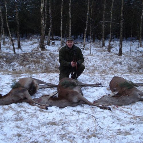 Hind stalking on a small state owned district with very professionally organized hunting close to the Polish/German border in north west Poland. Here it is possible to shoot wild boar, red deer and roe deer. Good discounts on wild boar, and with 4 hunters, also on hinds. Charming accommodation in the district itself.