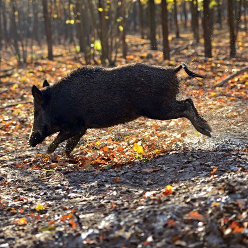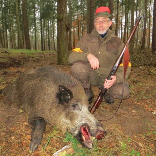 The sound of yapping dogs approaches, the beaters enthusiastic cries tell you that a group of boars is approaching the line of guns. You can hear the rustle of dry leaves, and feel your pulse throb in your temple. Here they come!…
