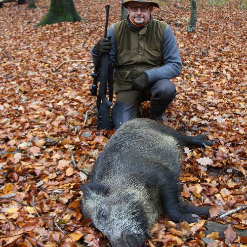 The sound of yapping dogs approaches, the beaters enthusiastic cries tell you that a group of boars is approaching the line of guns. You can hear the rustle of dry leaves, and feel your pulse throb in your temple. Here they come!…