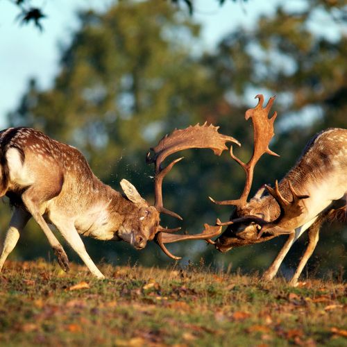 Deep grunts rip through the silence of the richly coloured autumnal forest. The big, mature fallow buck are fighting a fierce battle to win the favours of the hinds. The excitement in the air feels electric …