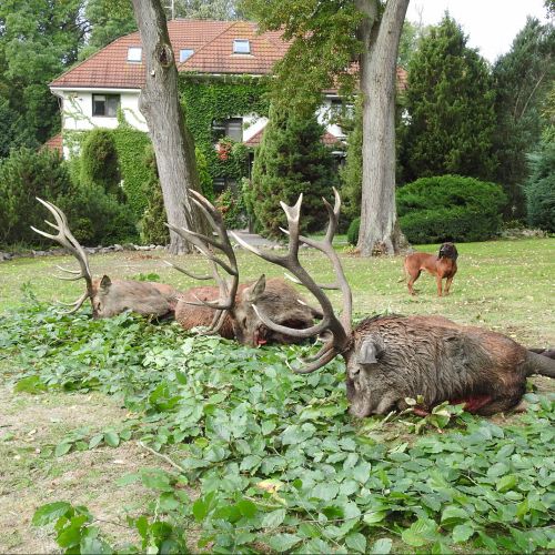 Jeg har nu tid og bruger de næste dage på at jage med kameraet. Også jægerne fra Münsterland fik nedlagt hjorte. Alle er spændte på at se, når hjortene kommer tilbage fra præparatoren. Selv en jagtferie får en ende, men inden afrejse skal hjortene vejes og bedømmes, og der skal skrives protokol.