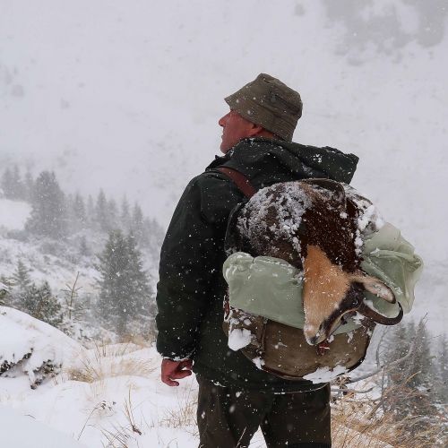 After a chamois has been shot, it is skinned and parted before being packed up for the decent.