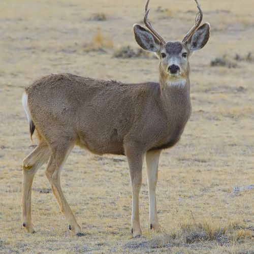 Description: Medium sized deer weighing around 70 kg. It measures up to 90 cm over the shoulder and reaches a total body length of 1,70 m, without tail. General colour brown, rump patch buff to white, often darker higher up. The antlers are forked.