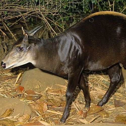 Description: Smaller antelope (biggest member of the Duiker-family) with a weight of up to 70 kg and a shoulder height of around 75 cm. General colour dark velvety brown with brown and grey markings on head. Hairs on back yellowish buff in patch broadening from the middle of the back to the rump, often raised in a brush-like crest.