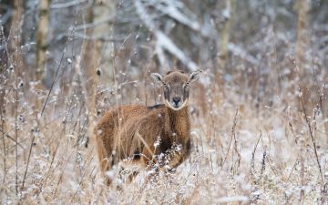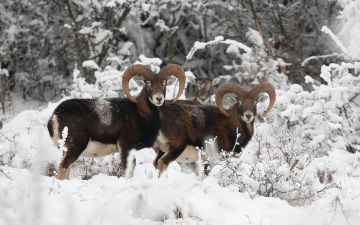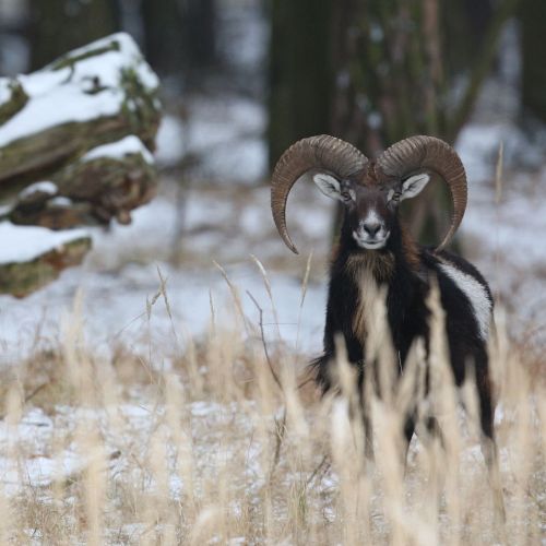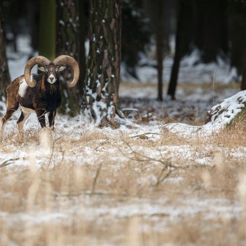 Description: Middle sized animal of the sheep family weighing up to 60 kg. (rams), and measuring around 80 cm over the shoulder. General colour dark brown on the back and along the flanks. A black band is bordering the undersides that are pure white. Older rams have got a "saddle" of white starting on the middle of the back and spreading down the sides. The horns are very different from region to region. Mature male horns are curled almost on full revolution.. In some areas however, the horns curve outwards and start twisting anew. There are also groups of individuals where the horns curve inwards, sometimes so much as to grow into the neck of the animal and thereby killing it. Only the rams have horns.
