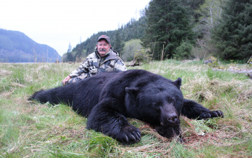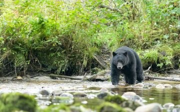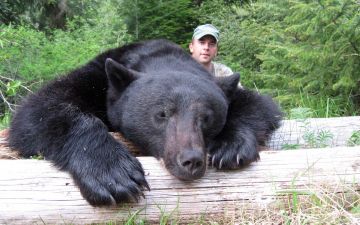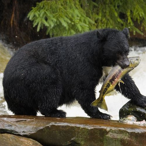 Description: The most common bear in America, weighing around 220 kg, and measuring up to 95 cm over the shoulder, reaching an average height of 1,80 m. Coat variable but mostly black (especially in the east, in the west the colour most often varies from cinnamon to black, and on Gribble Island B.C, the colour may be almost white). Near Yakutat Bay, Alaska the pelage may be almost bluish, hence the name "Blue Bear" or "Glacier Bear". Small white spots on the chest common. Claws and Face brownish.