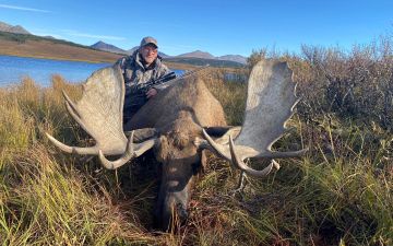 Description: Large deer weighing up to 300 kg and measuring around 1,30 m over the shoulder, reaching a total body length without tail of 2,20 meters. General colour dark chokolate brown in summer, greyish-white in winter, with pale underparts. Both sexes have antlers irregularly branced with several points, often semi-palmate in male.