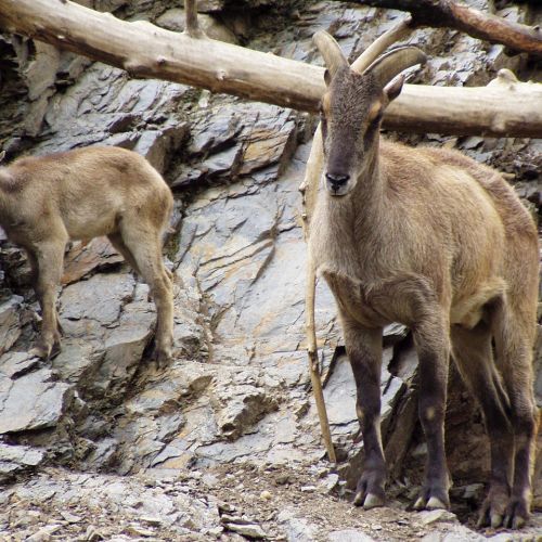 Description: The Tahr weighs up to 100 kg and measures up to 1.10 m over the shoulder. It may reach a total body length of 1,20 meters without tail (10 cm). General colour brown to greyish brown with a large mane of a lighter colouration. The horns are relatively small, thick at their base and bent backwards.