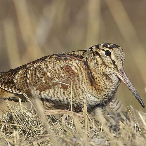 Description: Bulky wading bird, well camouflaged by brown and buff barring, creating a “dead leaf” effect. Long down pointing bill. In flight its rounded wings are diagnostic. Size: 32 - 36cm