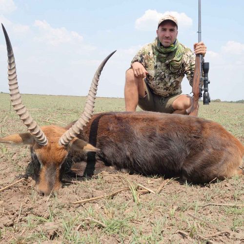 These safaris take place in the Bangweulu Game Management Area; most often referred to as the Bangweulu swamp. It is located in North Central Zambia. The reason for traveling to this area is to hunt the Black Lechwe, Zambezi Sitatunga, Tsessebe, Reedbuck and Oribi. This is the only place in Africa that the Black Lechwe is totally wild and free ranging. They number in the thousands. Often the most difficult task is getting a big Lechwe bull separated from the heard for your shot.