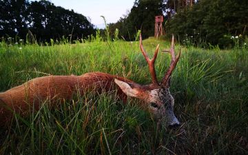 The district is home to roe deer, red deer, fallow deer, and wild boar. Every year, around 40 roe bucks are shot, with most having above-average trophy quality and opportunities for strong bucks over 350 grams. Bucks exceeding 400 grams net are also encountered. The red deer hunting is also attractive, with an annual quota of 8 stags – typically with antler weights of 5-7 kg, but also with a good chance of larger trophies weighing up to 8-9 kg. The fallow deer population faces some challenges due to wolves, but a good fallow deer hunt is still offered, with stags harvested between 2.50-3.00 kg. Wild boars are hunted both on individual hunts throughout the season and on driven hunts in the autumn and winter months.