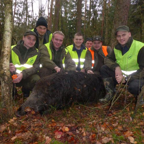There is also the option of combination hunts, where morning driven hunts are combined with individual hunting with a personal hunting guide in the afternoon/evening. If the weather permits, wild boar hunting may continue into the evening – note that using Night-Vision for wild boar hunting is legal. The parade typically consists of a mix of red deer, wild boar, fallow deer, roe deer, and foxes, and the district expects shots to be fired at any game that presents itself to achieve a satisfactory result (though not necessarily stags). This also applies to driven hunts.