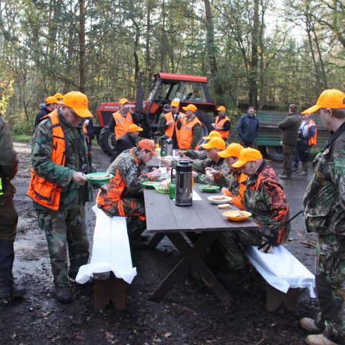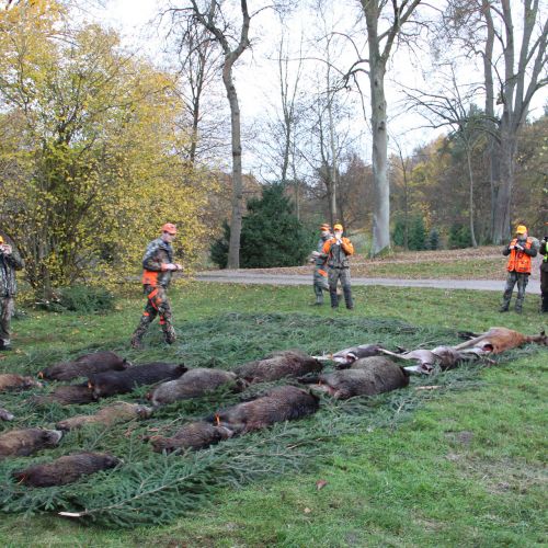 Our Chojna hunting district covers a total area of 13,820 hectares, of which 9,354 hectares are forest, while the remaining 4,466 hectares consist of agricultural land, meadows, and lakes. The forest is primarily made up of coniferous forest (76%), but also includes 5% beech, 9% oak, and the rest is mixed deciduous trees. The area is predominantly flat, with some lightly hilly terrain. Chojna has 40 high seats, as well as 10 feeding places. It can accommodate up to 4-5 hunters at a time for individual hunting, while the optimal number for driven hunts is 12-15 hunters.