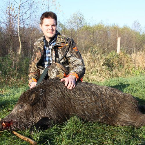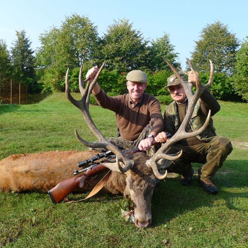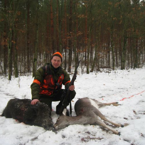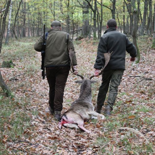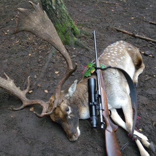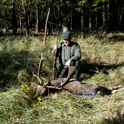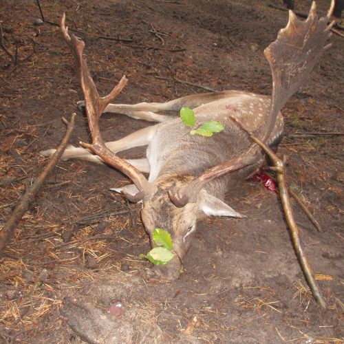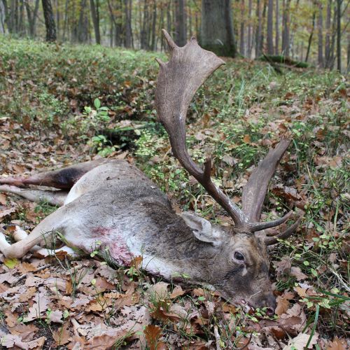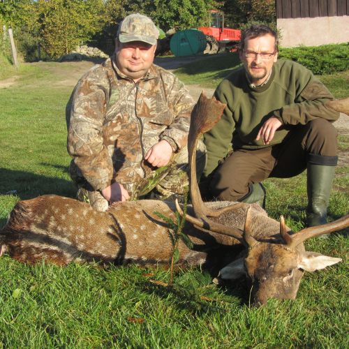 Chojna is home to good populations of red deer and fallow deer, which attract hunters back year after year. The red deer hunting is particularly attractive, with an annual quota of around 22 stags, most of which have antler weights around 6 kg, but there is also the chance to shoot impressive stags weighing up to 8-9 kg. The fallow deer population is unfortunately declining due to wolves, but the district still offers a very good fallow deer hunt, with 12 fallow deer harvested annually, having antler weights between 2.50-3.20 kg. There are also some roe deer in Chojna, but the population is modest, with around 8 bucks shot each year.