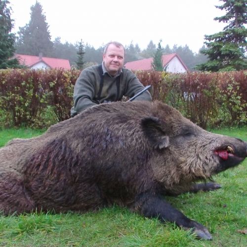 Accommodation takes place in a lovely hunting lodge in the heart of the district. While it is not a luxurious place, everything is as it should be, and the catering is very good. Our guests stay in one part of the house, while the hunting guide, Marek, resides in the other part. Marek speaks English and ensures that everything runs smoothly. The guest section includes a cozy living/dining room, 6 double rooms (2 rooms share a bathroom and toilet), as well as 2 apartments, each with 1 room, 1 bathroom, and 1 small living room. A refrigerator is available for our guests' use. Wi-Fi is available in the house, but mobile coverage is poor.