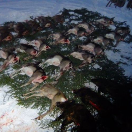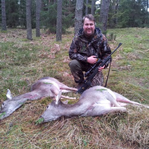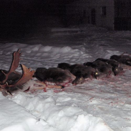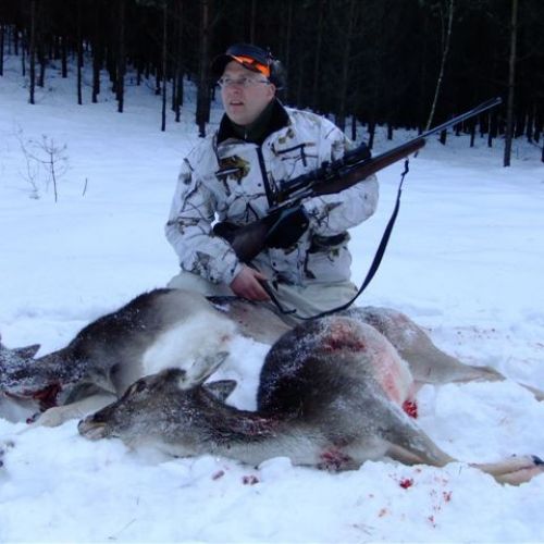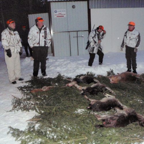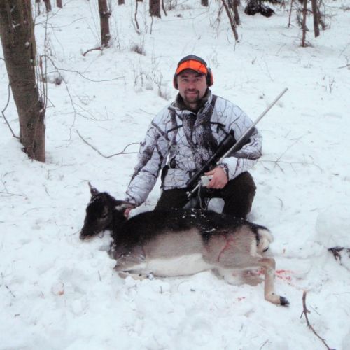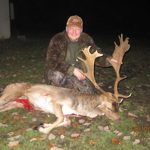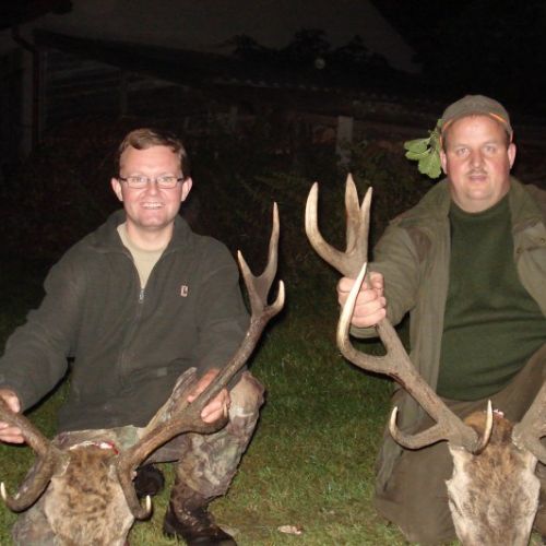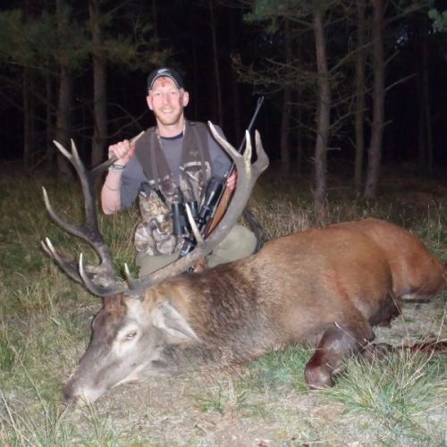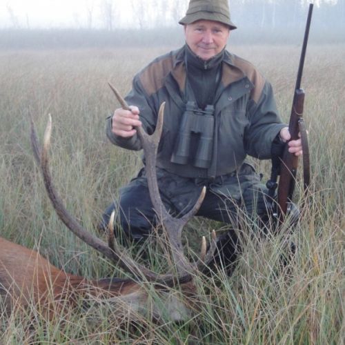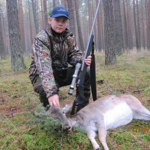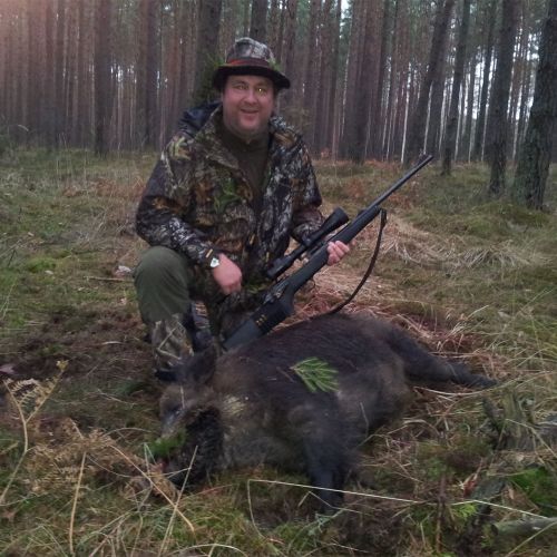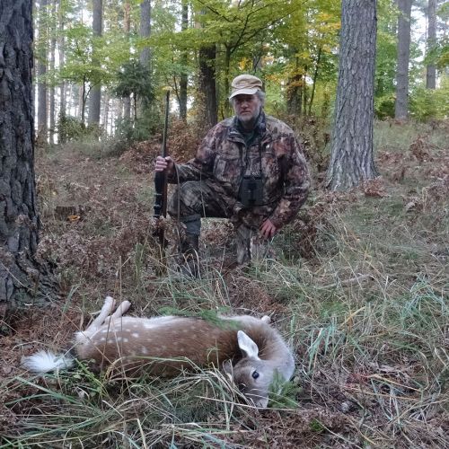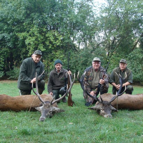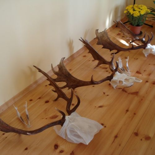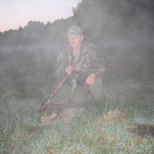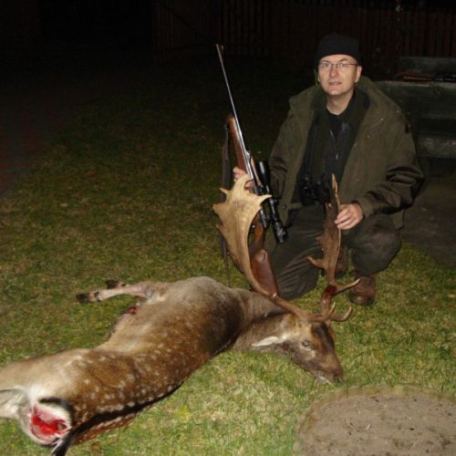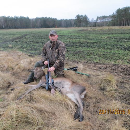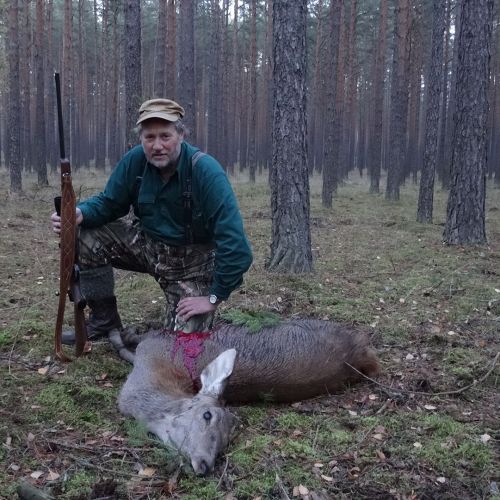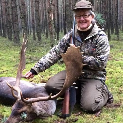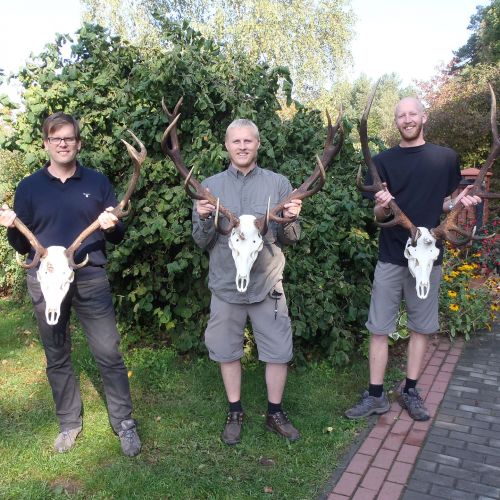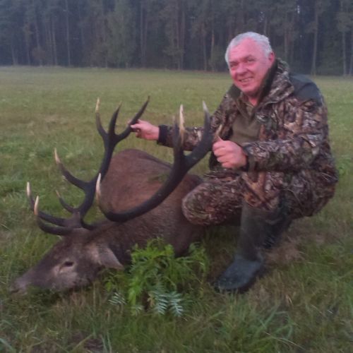 The district has a good population of fallow deer, with an annual harvest of approximately 50 animals. Dąbrowa also has good populations of red deer and wild boar, while the roe deer population is quite limited. Each year, about three roe bucks are taken. Dąbrowa also has a fine red deer population, with an annual quota of around 17 stags—most of them with a trophy weight of 4–6 kg, though some trophies exceed 6 kg each year. More than 20 fallow bucks are harvested annually, and they are typical Polish fallow deer, with some stags reaching or slightly exceeding a trophy weight of 3 kg. There is a reasonable population of wild boar in Dąbrowa, which are hunted both individually throughout the season and during driven hunts in autumn and winter.