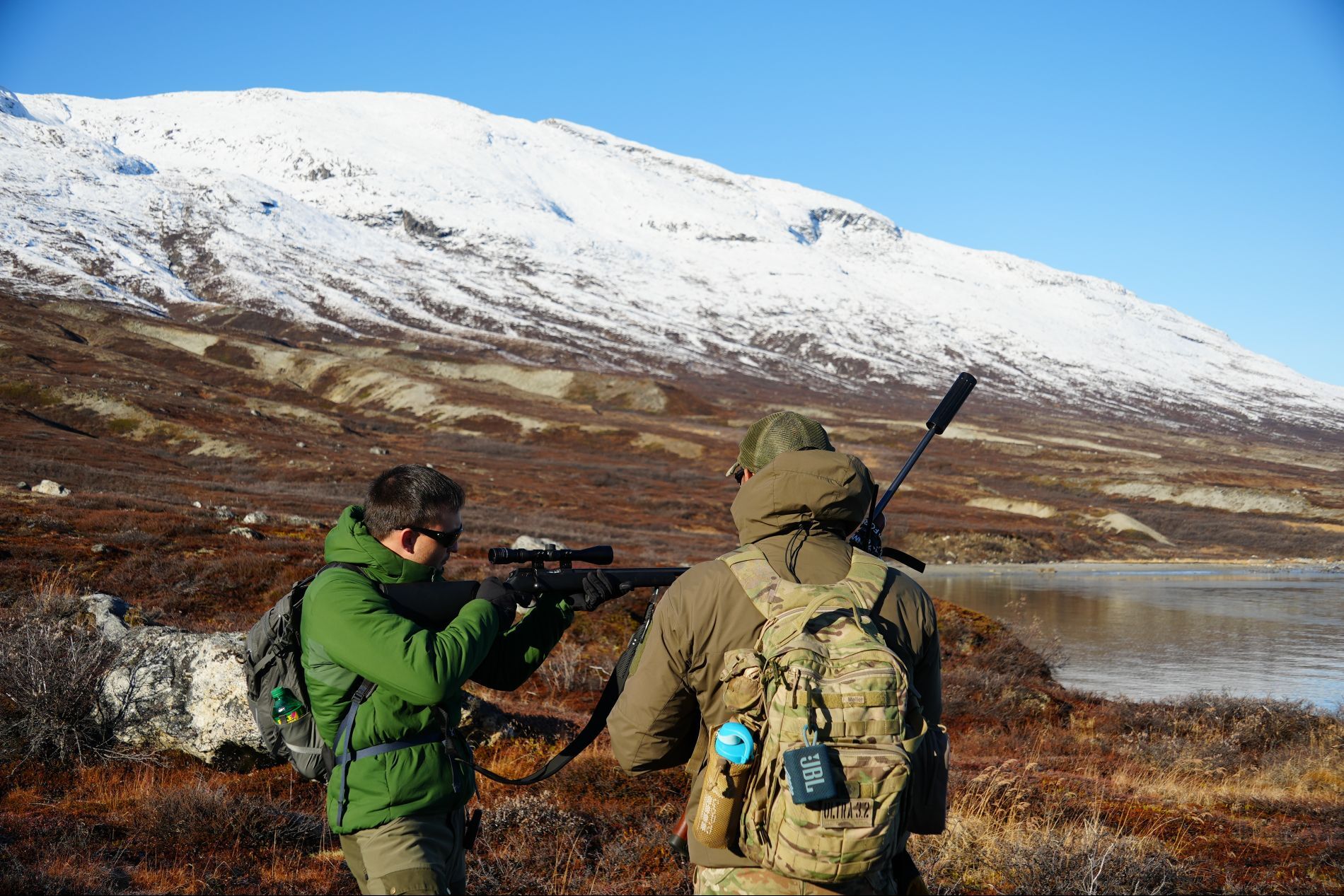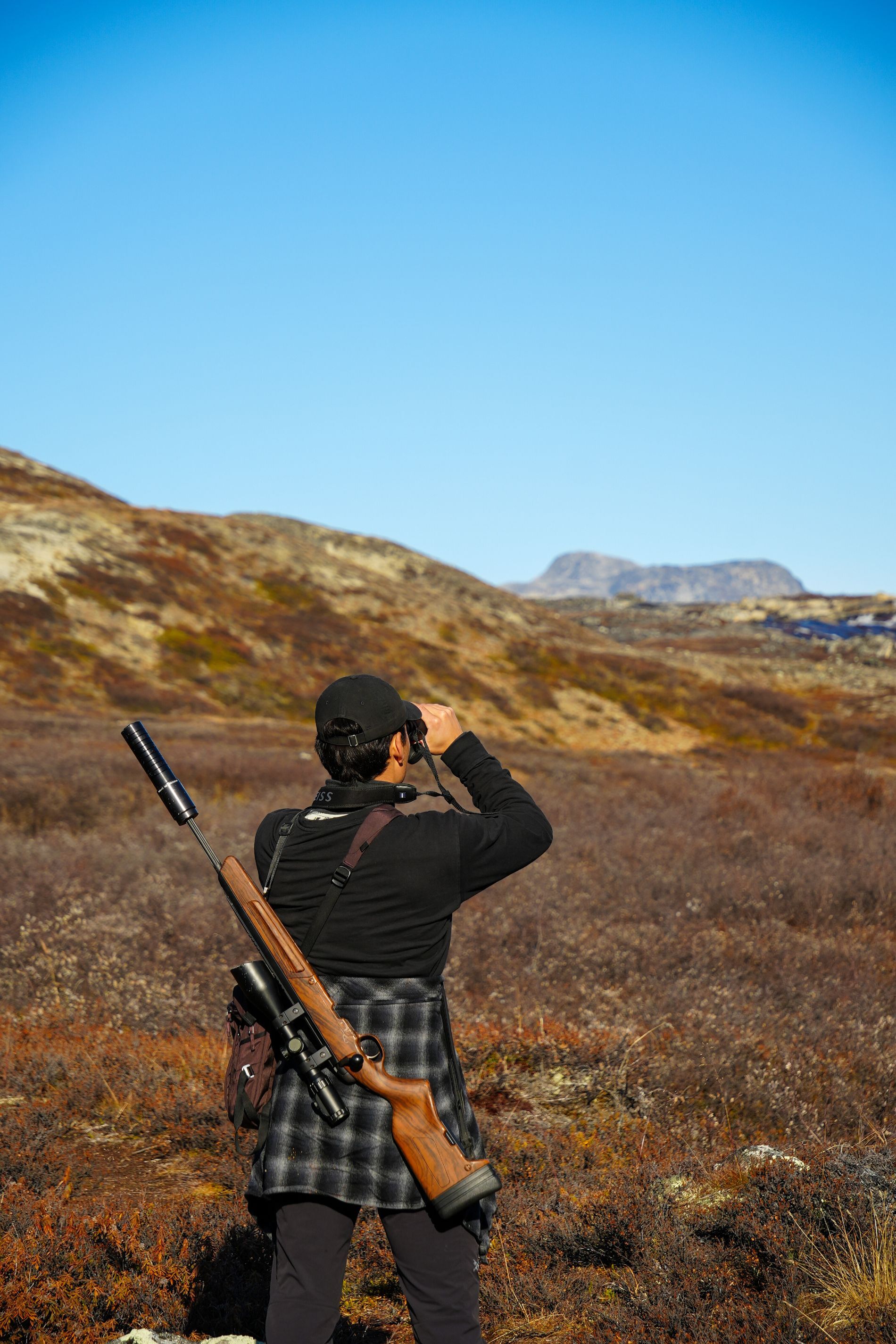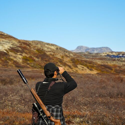 The terrain is very hilly, and one must be able to hike between 10 and 20 km per day, with up to 1000 meters of elevation gain. Here, it is the weather, the wind, and the animals that set the pace, and we are merely guests. In the areas we hunt, there is virtually no infrastructure, which naturally also requires proper safety equipment and signaling devices. The terrain is very uneven and in places quite inaccessible.
