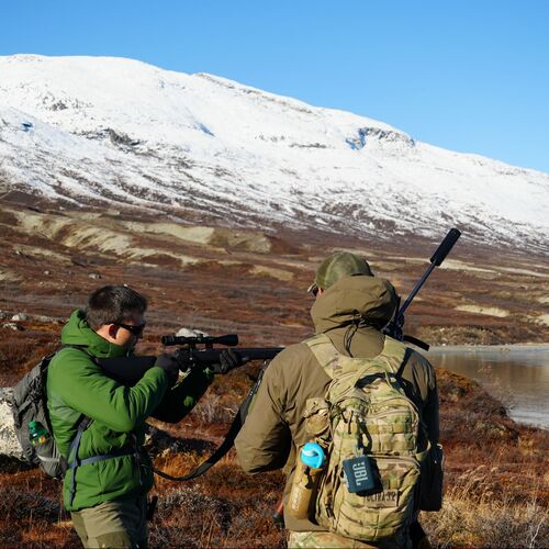 You should also expect to be able to carry your reindeer down from the mountain. A large bull can weigh between 75 and 100 kg. It is important to have good, well-broken-in hiking boots, as well as sensible hunting clothing that can withstand snow, rain, and sleet, but also sun and heat. The weather can be very changeable, so you can quickly find yourself caught with the wrong clothing.