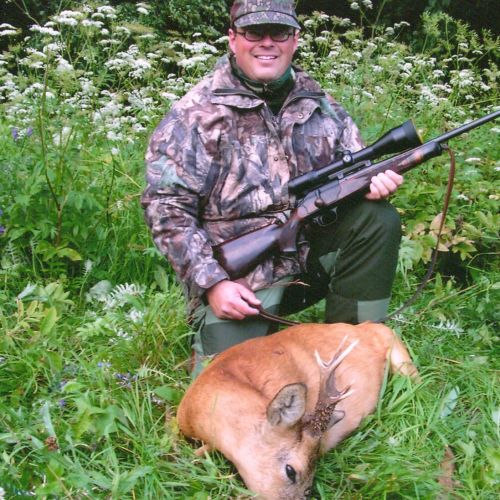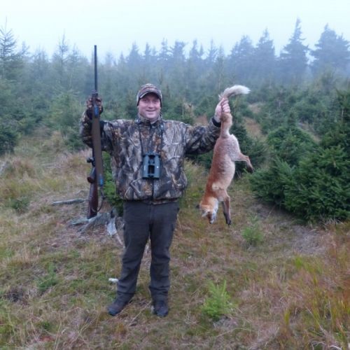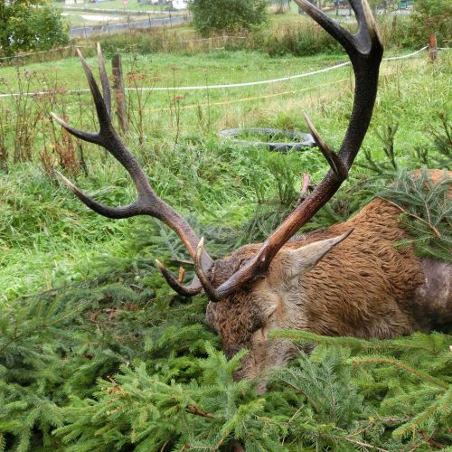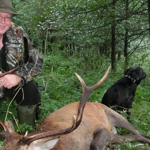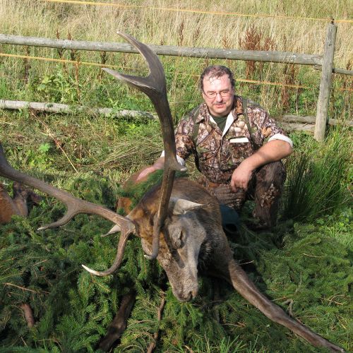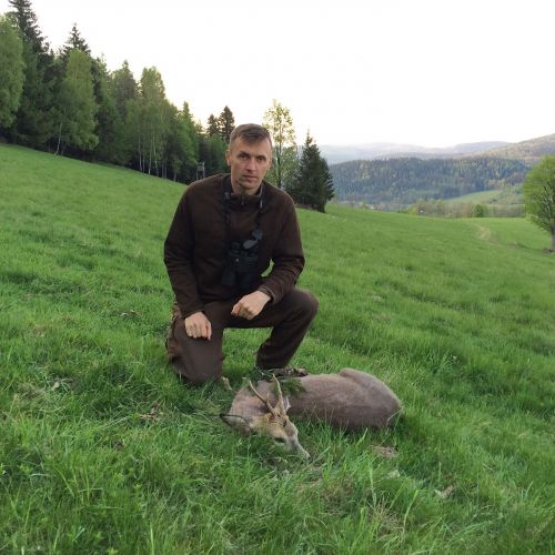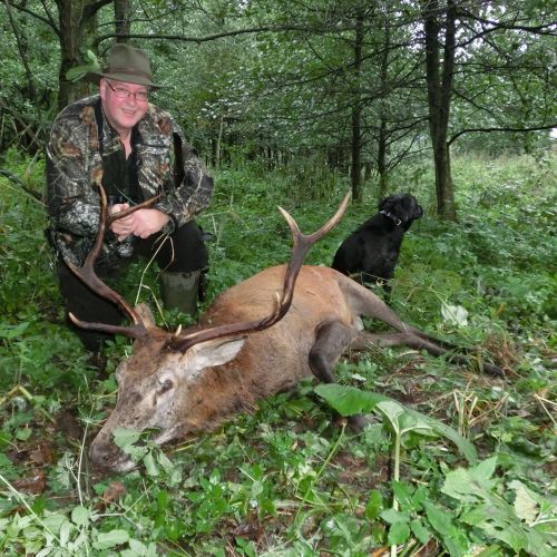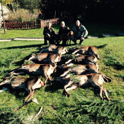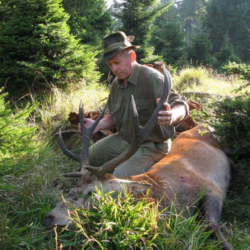 The district is home to roe deer, red deer, and wild boar, with red deer being the dominant species. Each year, approximately 17 roe bucks are harvested, along with up to 40 roe deer in total. The red deer hunting in Ladek Zdroj is outstanding—around 200 red deer are taken per hunting season, including about 75 stags, most with trophy weights ranging from 3.50 to 5.50 kg. The rut is typically very strong in Ladek, and the hilly terrain provides both challenging stag hunts and excellent autumn hunts for hinds and calves. Wild boar are primarily hunted in combination with roe buck, stag, and hind hunts, with a minimum of 30 wild boars harvested each season. Mouflon is present as a transient game, with a small annual quota.