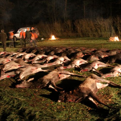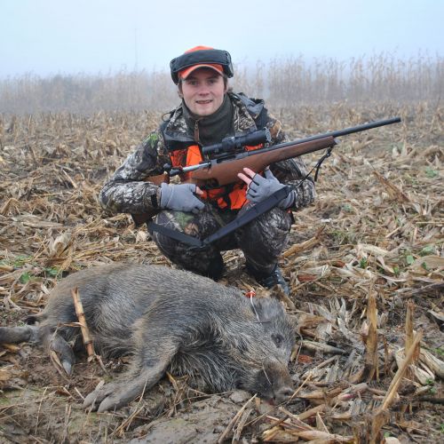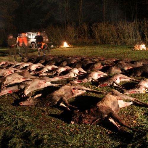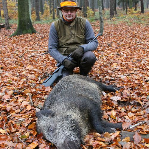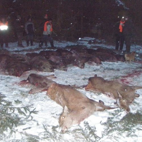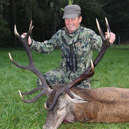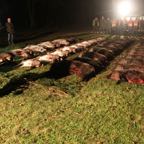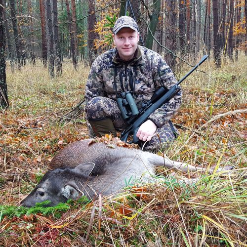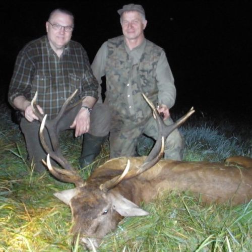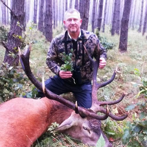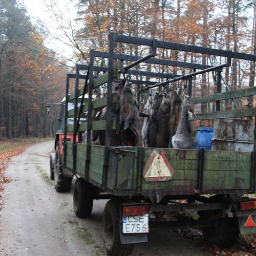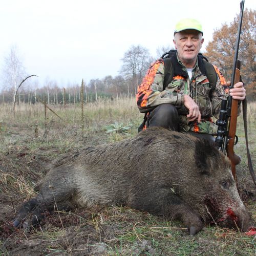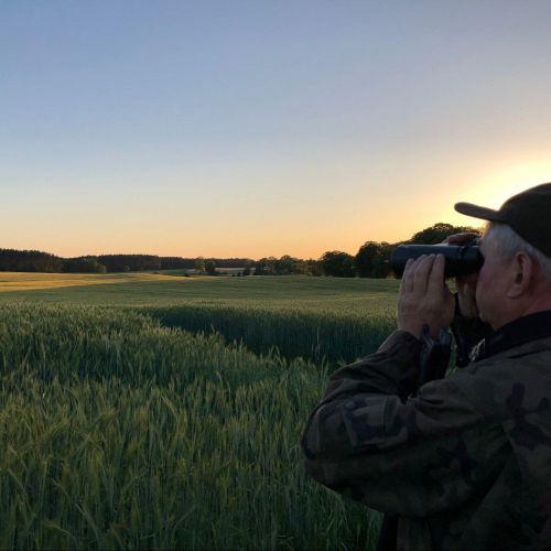 The state hunting district Lutowko spans an impressive area of 18,000 hectares, of which 9,000 hectares are forest, while the remaining 9,000 hectares are primarily agricultural land, but also include meadows, lakes, and wetlands. The forest consists mainly of coniferous trees (about 60%), but also features beautiful oaks, birch, and other deciduous trees. The area is mostly flat. Lutowko has more than 35 high seats, as well as 22 feeding places. Up to 5 hunters can hunt at a time on individual hunts, but 4 hunters is the most optimal number. Driven hunts are arranged for groups of at least 14 hunters.