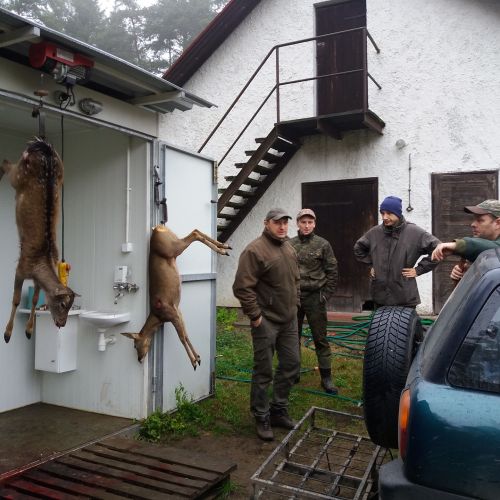 Accommodation takes place in a newly built hunting lodge in the middle of the reserve. The guest area includes 2 single rooms, 4 double rooms, and 3 triple rooms, all with their own toilets and bathrooms. The hunting manager, Sebastian, speaks good English and will be available to ensure a smooth hunting experience. There is access to a locked garage and cold storage. Wi-Fi and mobile coverage are available.
