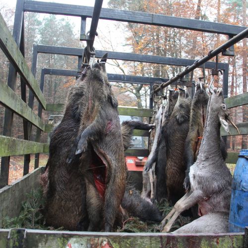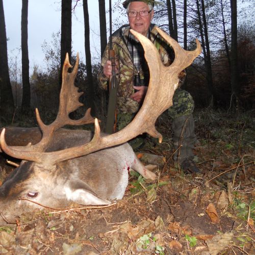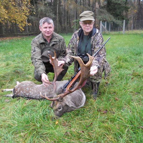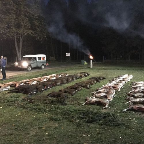 Lutowko has strong populations of both roe deer, red deer, fallow deer, and wild boar. The annual red deer quota is around 50 stags – most with trophy weights of 5-7 kg, but also a number of stags over 7 kg – and some even exceed 8-9 kg. The fallow deer population is challenged by wolves, but still, around 22 fallow bucks are harvested annually with good trophies up to 3 kg, and occasionally slightly more. The harvested roe deer bucks have good trophy quality, with most ranging from 250-400 grams. Approximately 30 roe deer bucks are harvested each year. Wild boar are also found on Lutowko, and these are hunted both on individual hunts throughout the season and on the 4 annual driven hunts, which normally yield good results with a mix of all game species – however, groups should be aware of restrictions on fallow deer.