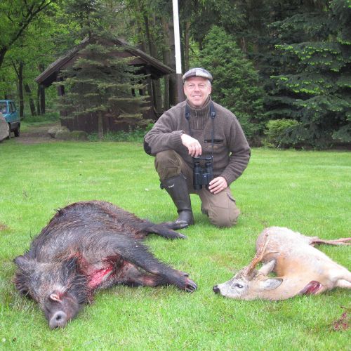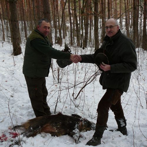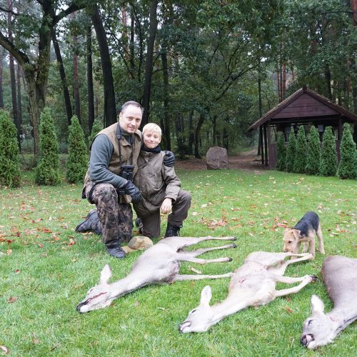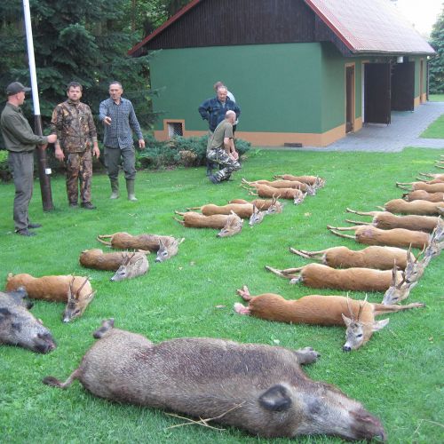 The district offers hunting for roe deer, red deer and wild boar. Around 110 bucks are shot here annually. The trophy size for most of these bucks is under 300g, but a number of trophies between 300-400g are taken as well as one or two above 400g. The annual red stag quota is for 11 stags - most of which have a trophy size of around 5 kg, but trophies of above 6 - 7 kg are produced annually. Maniszewo has a dense population of wild boar. These can be hunted on individual hunts throughout the season and on driven hunts in the autumn and winter.