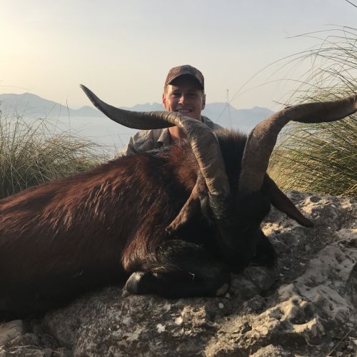 The coat of this wild goat is reddish brown, and the males sport a beard and large, spiral, rear facing horns. Occasionally the females also grow horns.